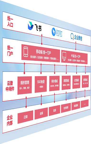对协作平台提供支持服务,,支持企业应用与协作平台对接,,包含组织同步、、、消息集成、、、、待办集成等。。支持目前主流的协作平台:钉钉、、、企微和飞书。。。